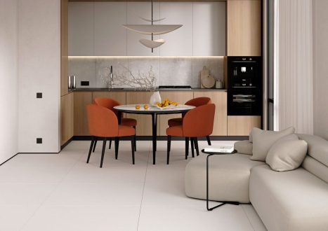 Портфолио бренда можно назвать по-настоящему богатейшим - практически любая идея дизайна может быть реализована с помощью полной гаммы материалов Laparet - различные породы природного камня, мрамор, оникс, плитка с имитацией натурального дерева, бетонные поверхности, металлические акценты, решения в стиле терраццо и многое другое;